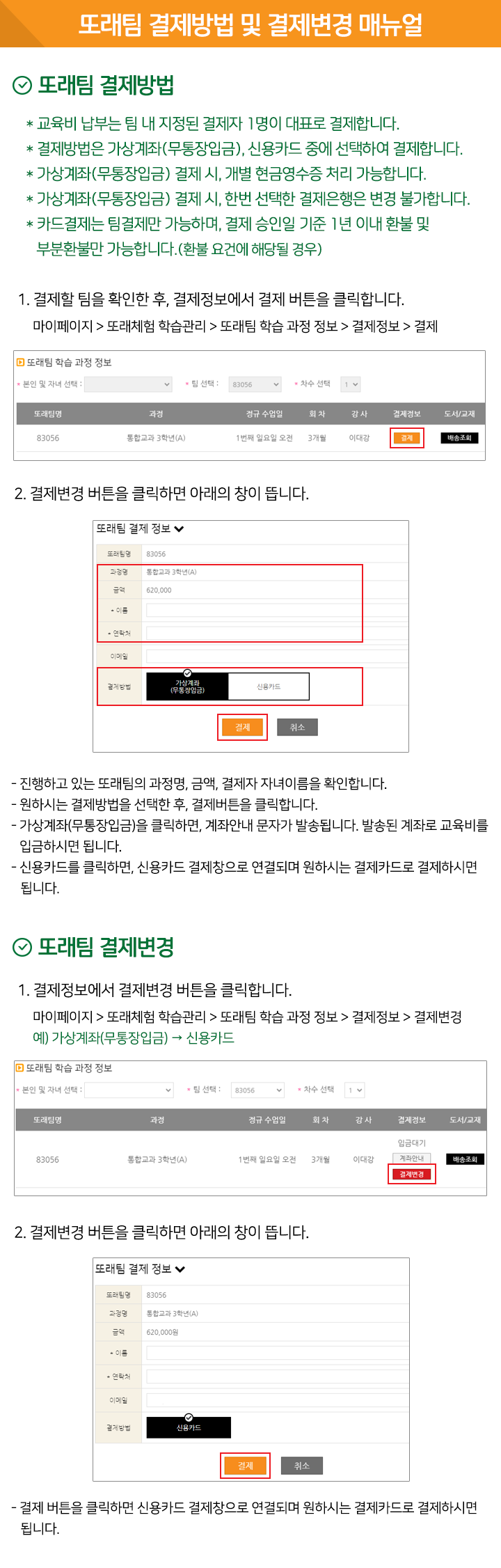 제목 또래팀 결제방법 및 결제변경 매뉴얼