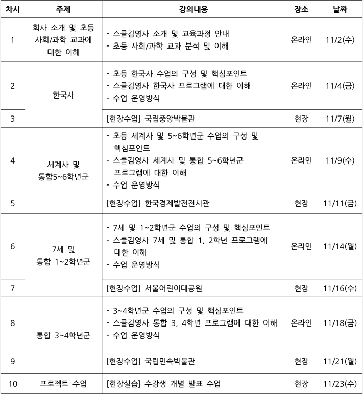스쿨김영사 체험학습 전문강사 모집 및 강사교육 안내