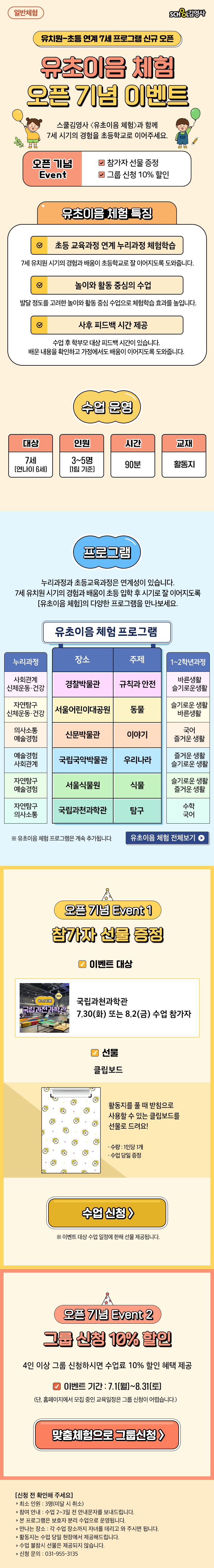 제목 [일반체험] 유초이음 체험 신규 오픈 기념 이벤트