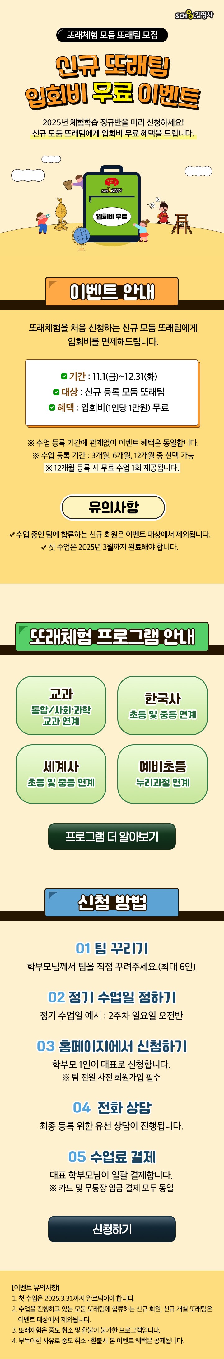 제목 [또래체험] 모둠 또래팀 신규 입회비 면제 이벤트