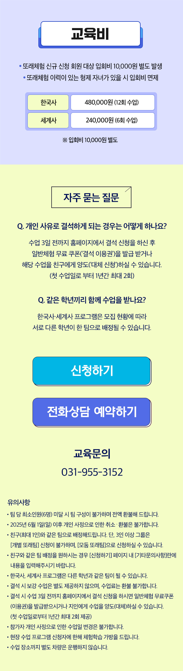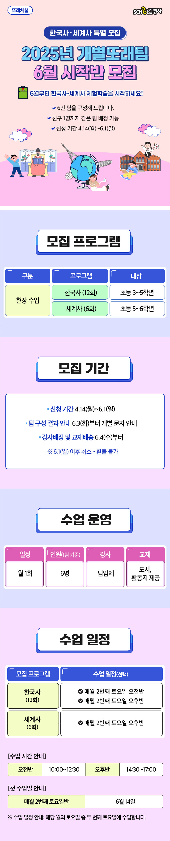 제목 [또래체험] 개별또래팀 25년 6월 시작반 특별 모집 안내(한국사, 세계사)