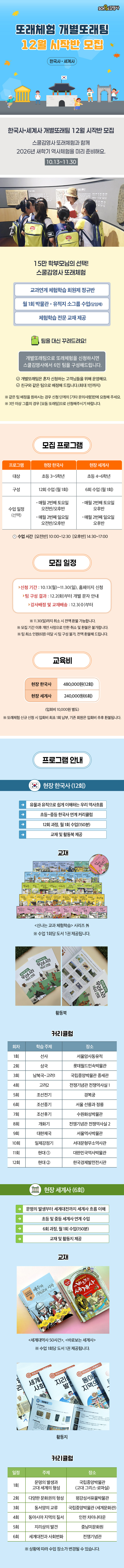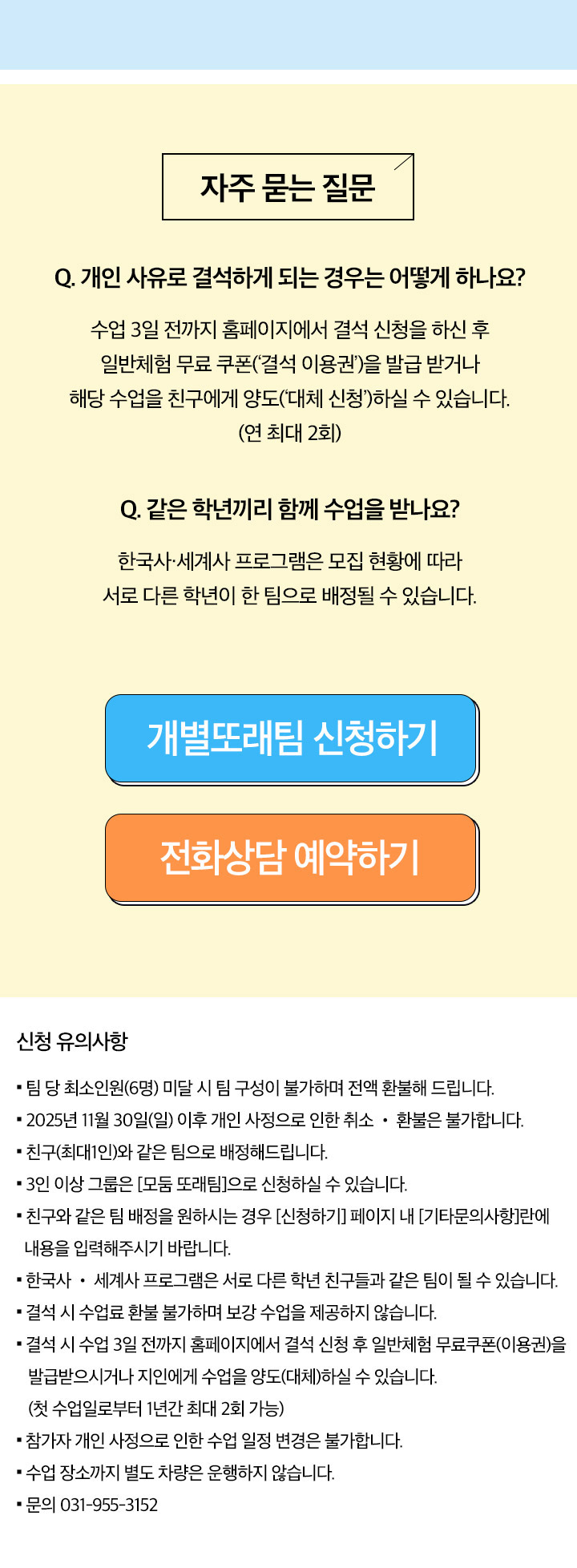 제목 [또래체험] 개별또래팀 한국사•세계사 12월 시작반 특별 모집