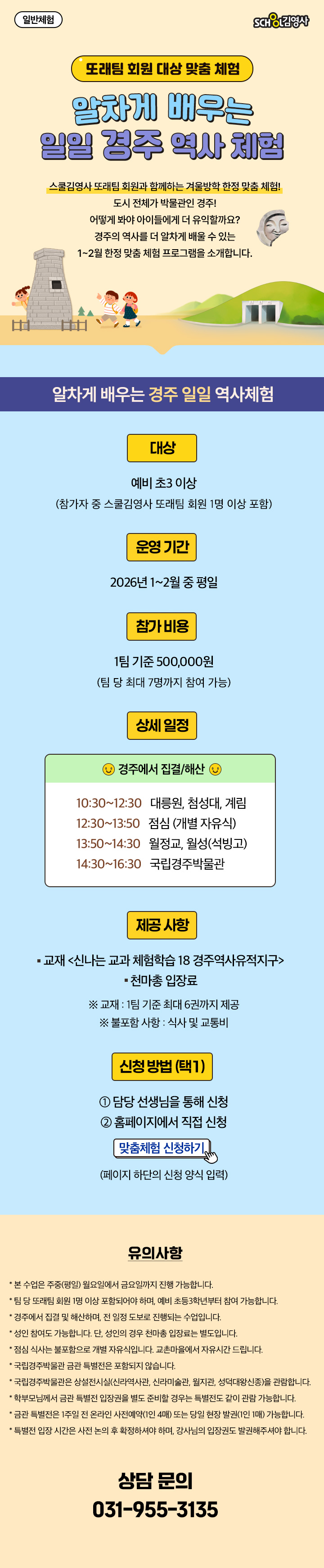 제목 [또래팀 회원 대상 맞춤 체험] 알차게 배우는 일일 경주 역사 체험