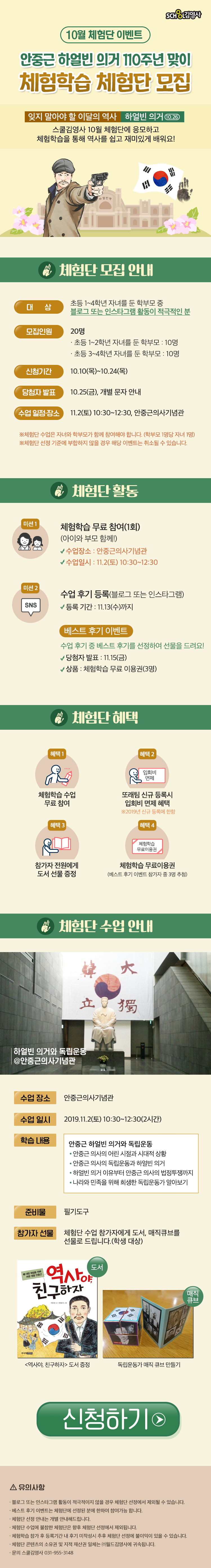 안중근 하얼빈 의거 110주년 맞이 체험학습 체험단 모집