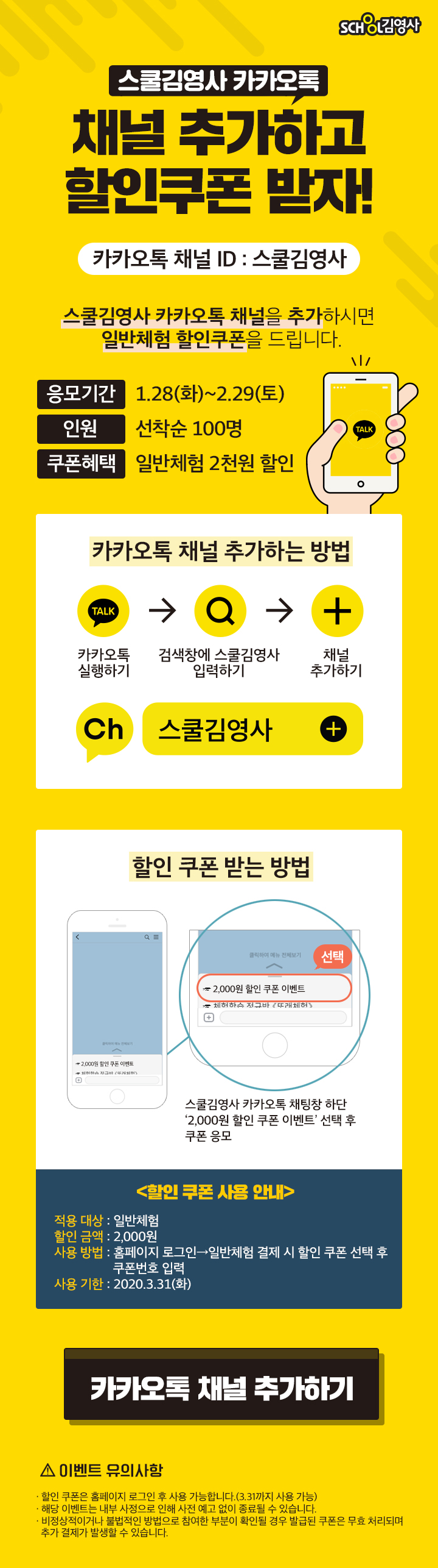 스쿨김영사 카카오톡 채널 추가하고 할인쿠폰 받자!