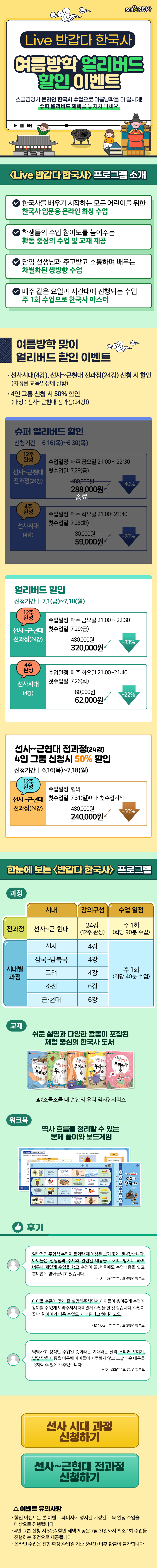 Live 반갑다 한국사 여름방학 얼리버드 할인 이벤트