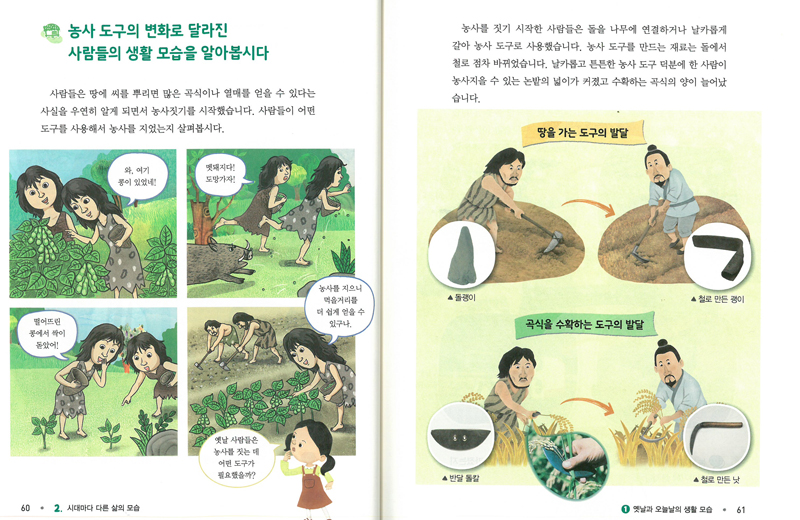 1. 농사도구의 변화로 달라진 사람들의 생활 모습을 알아보자. 2. 음식과 옷을 만드는 도구의 변화로 달라진 사람들의 생활 모습을 알아보자. 3. 사람들이 사는 집의 모습 변화로 달라진 사람들의 생활 모습을 알아보자.
