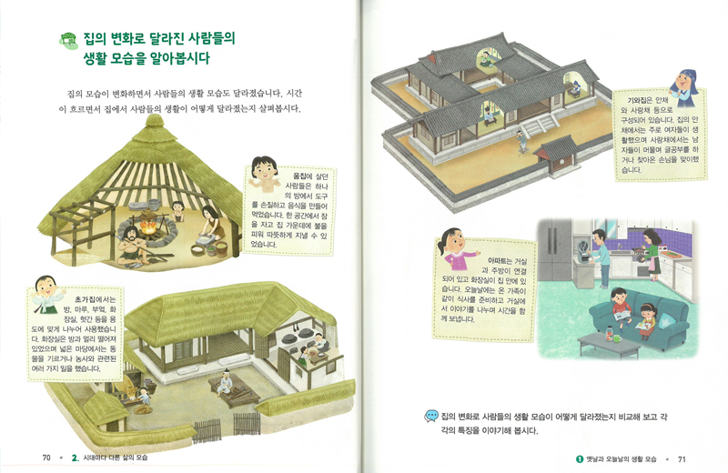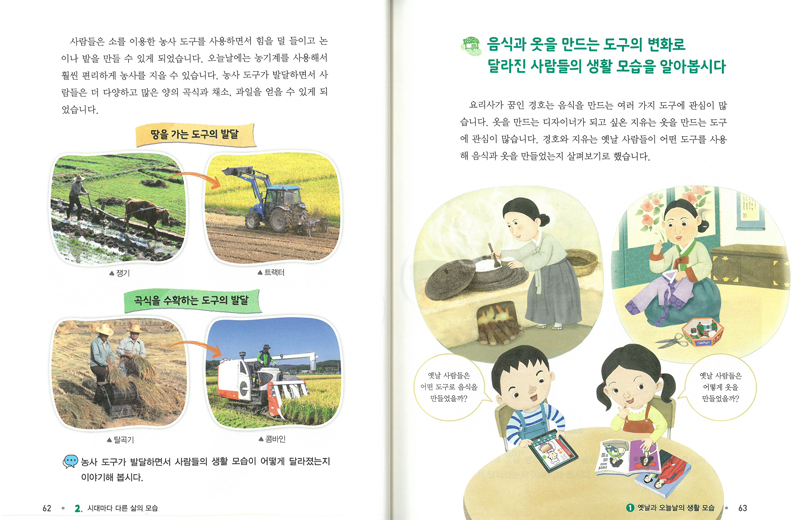 옛날과 오늘날의 의식주 변화를 비교하고 시대마다 다른 삶의 모습을 알아본다.