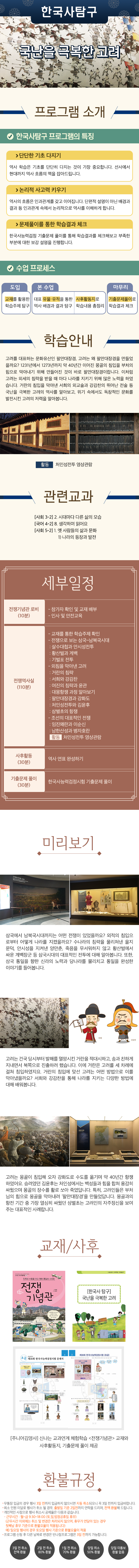 ㆍ시간 : 오전 10:00~13:00, 오후 14:30~17:30 (날짜 별로 상이) ㆍ만나는 장소 : 전쟁기념관 로비 ㆍ회비 : 1회당 32,000원