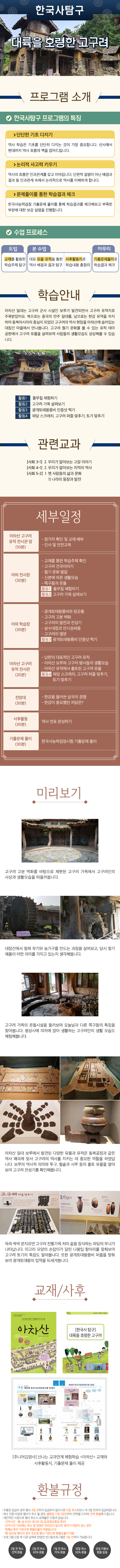 ㆍ시간 : 오전 10:00~13:00, 오후 14:30~17:30 (날짜 별로 상이) ㆍ만나는 장소 : 아차산 고구려유적 전시관 앞 ㆍ회비 : 1회당 32,000원