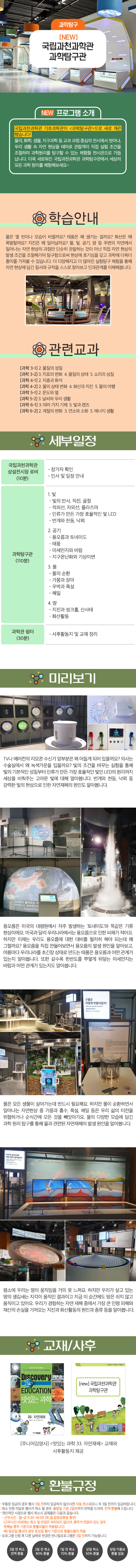 ㆍ시간 : 오전 10:00~12:30, 오후 14:30~17:00 (날짜 별로 상이) ㆍ만나는 장소 : 국립과천과학관 로비 ㆍ회비 : 1회당 32,000원