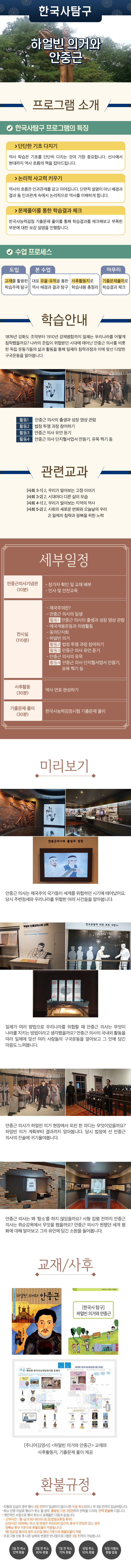 ㆍ시간 : 오전 10:00~13:00, 오후 14:30~17:30 (날짜 별로 상이) ㆍ만나는 장소 : 안중근의사기념관 입구 ㆍ회비 : 1회당 32,000원