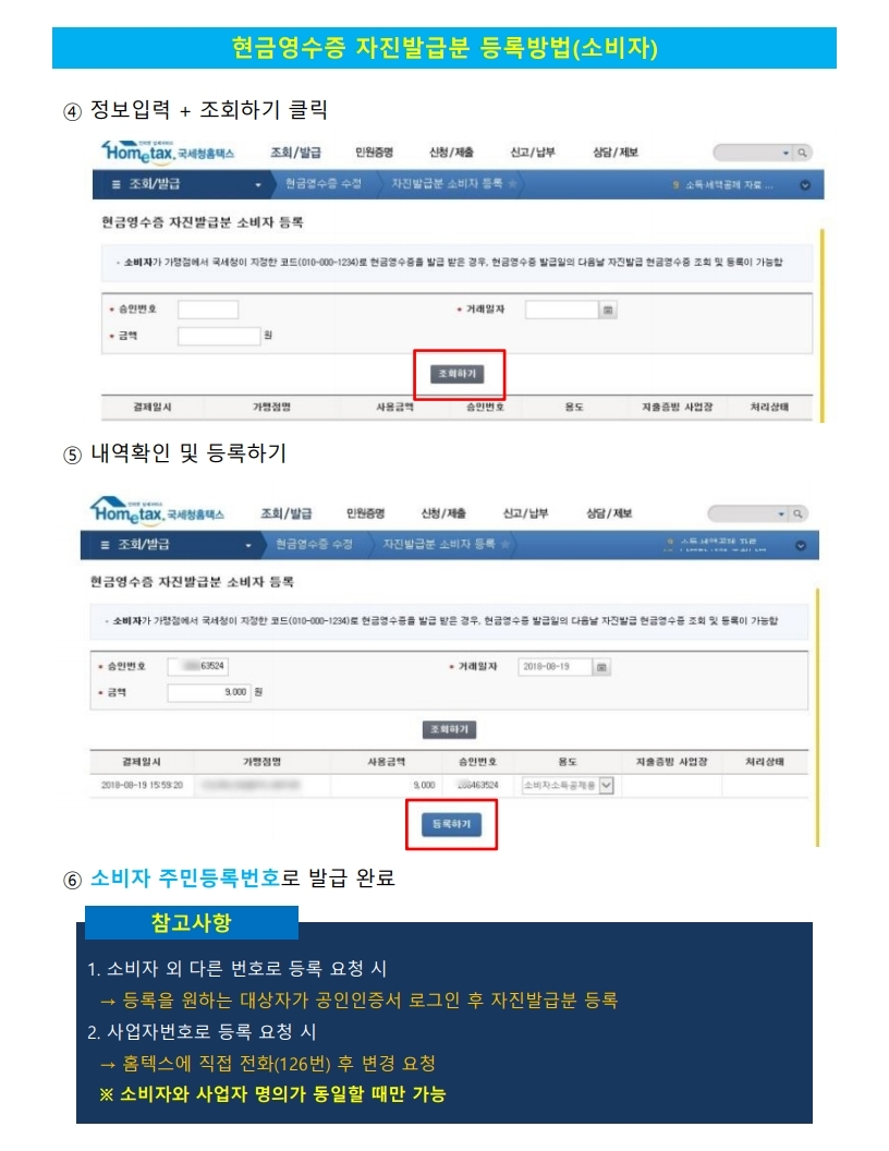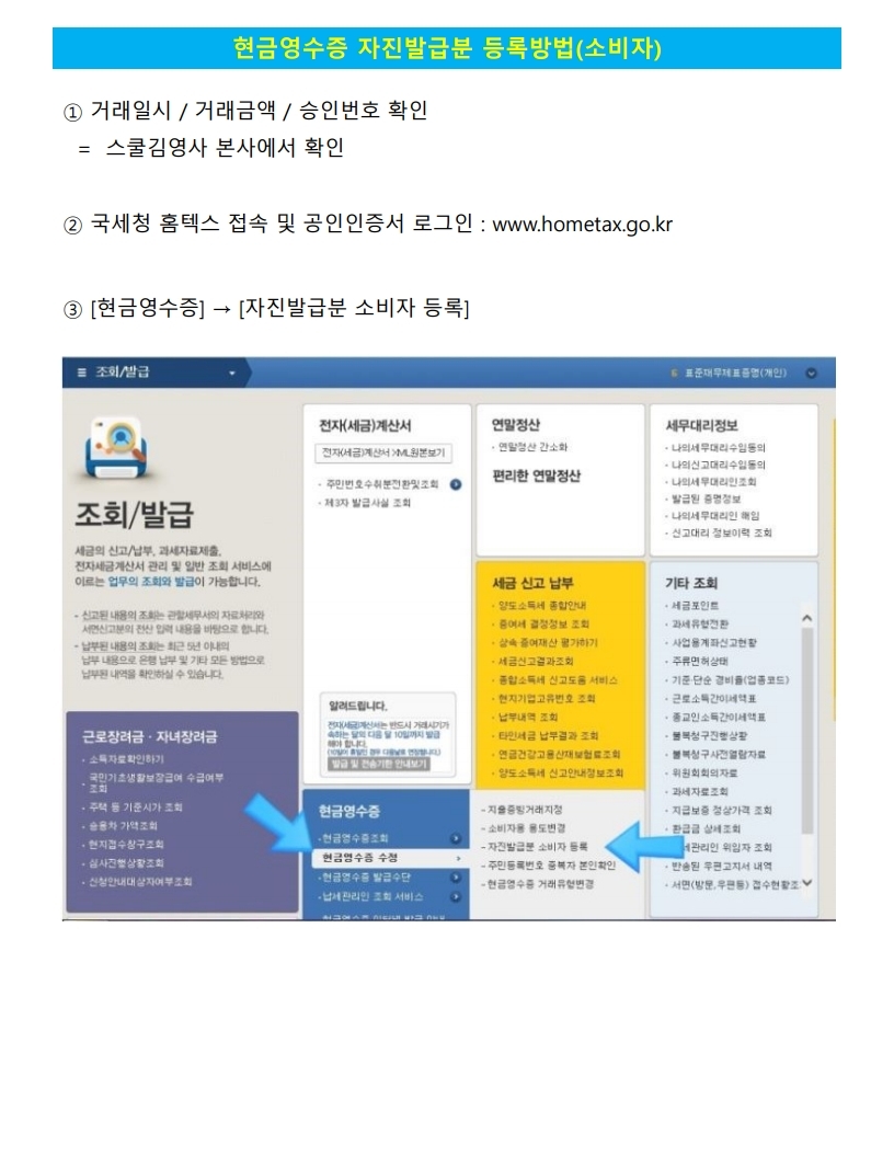 ※ 추후 자진발급된 현금영수증을 회원이 직접 국세청 홈페이지에서 주민번호로 현금영수증 변경 가능
