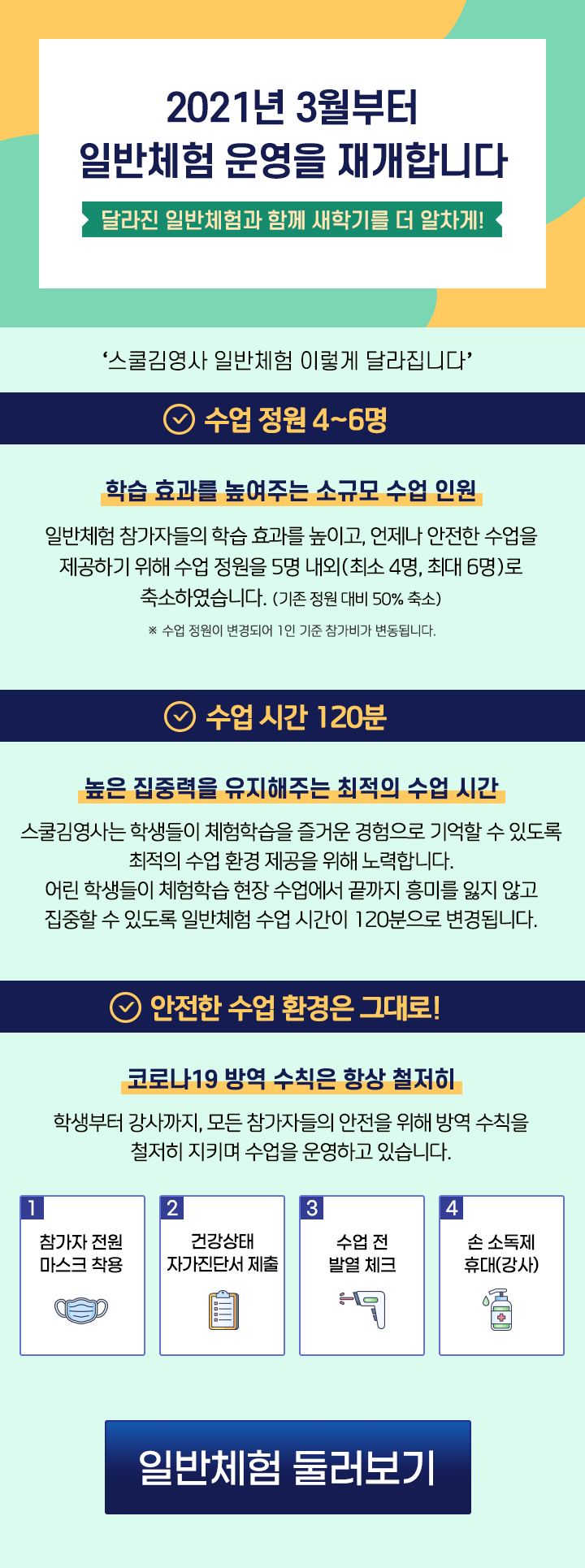 제목 2021년 3월부터 일반체험 운영을 재개합니다