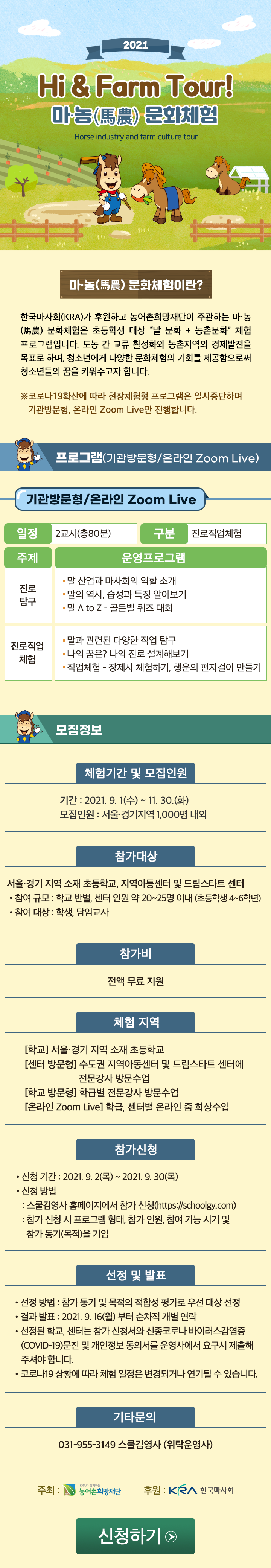 제목 Hi & Farm Tour! 마∙농(馬農) 문화체험