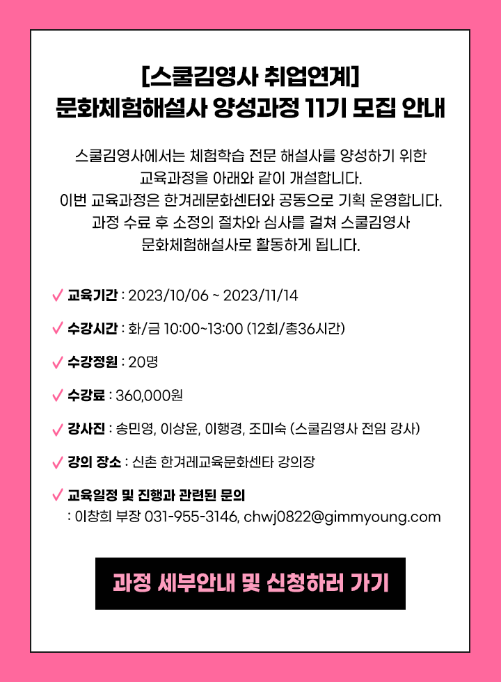 제목 [스쿨김영사 취업연계]문화체험해설사 양성과정 11기 모집 안내