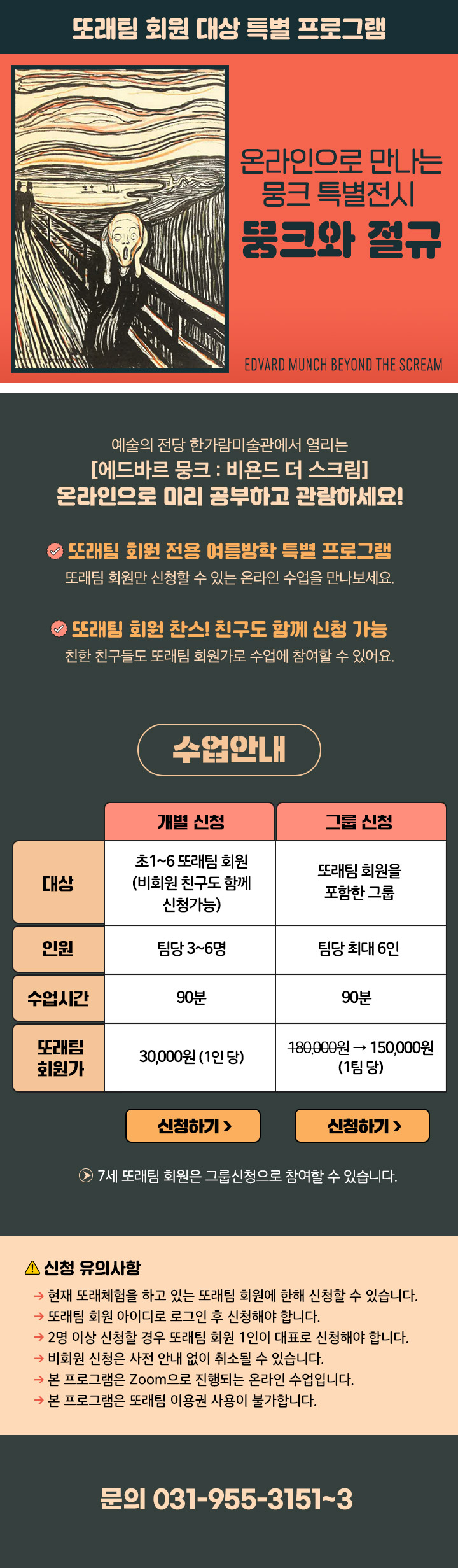 제목 [또래팀 대상] 온라인으로 만나는 뭉크 특별전 신청 안내