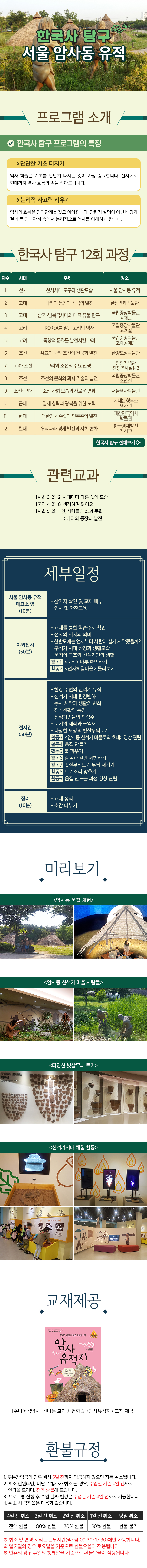 ㆍ시간 : 오전 10:00~12:00 오후 14:30~16:30 (날짜별로 상이) ㆍ만나는 장소 : 서울 암사동 유적 매표소 앞 ㆍ회비 : 1회당 38,000원