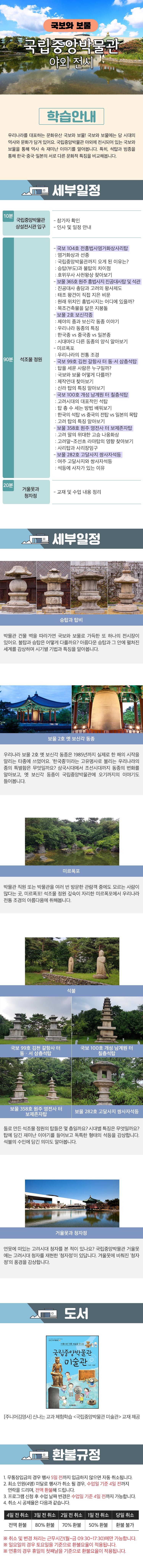 ㆍ시간 : 오전 10:00~12:00, 오후 14:30~16:30 (날짜별로 상이) ㆍ만나는 장소 : 국립중앙박물관 상설전시관 입구 ㆍ회비 : 1회당 38,000원