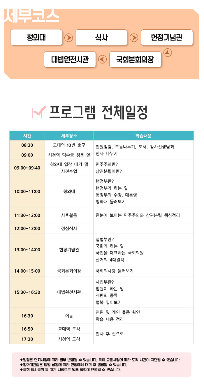 ㆍ준비물 : 필기도구, 물, 우산 또는 우의(우천시)