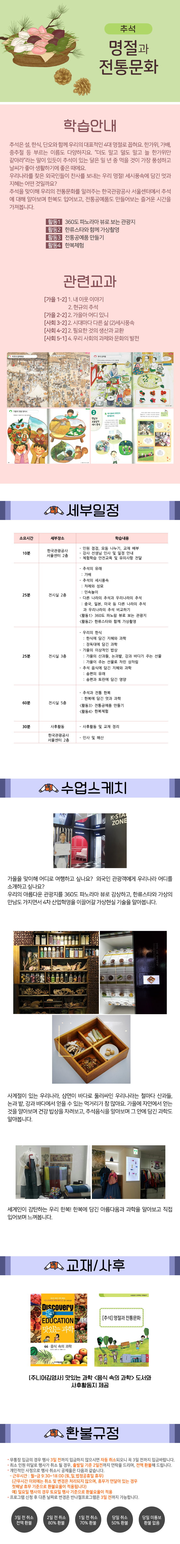 행사 취소시 공제율은 당사 환불규정과 같습니다. [반나절 프로그램] 3일전취소-전액환불 / 2일전 80%환불 / 1일전 70%환불 / 당일취소-50%환불 / 당일 미통보-환불없음